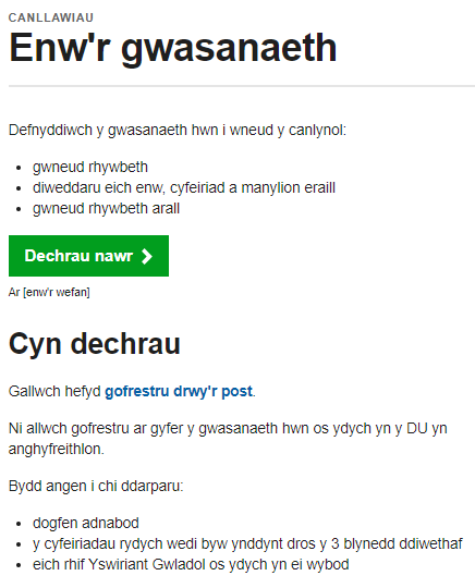 - llywio i dudalen mewngofnodi i wasanaeth o dudalen fewngofnodi LLYW.CYMRU