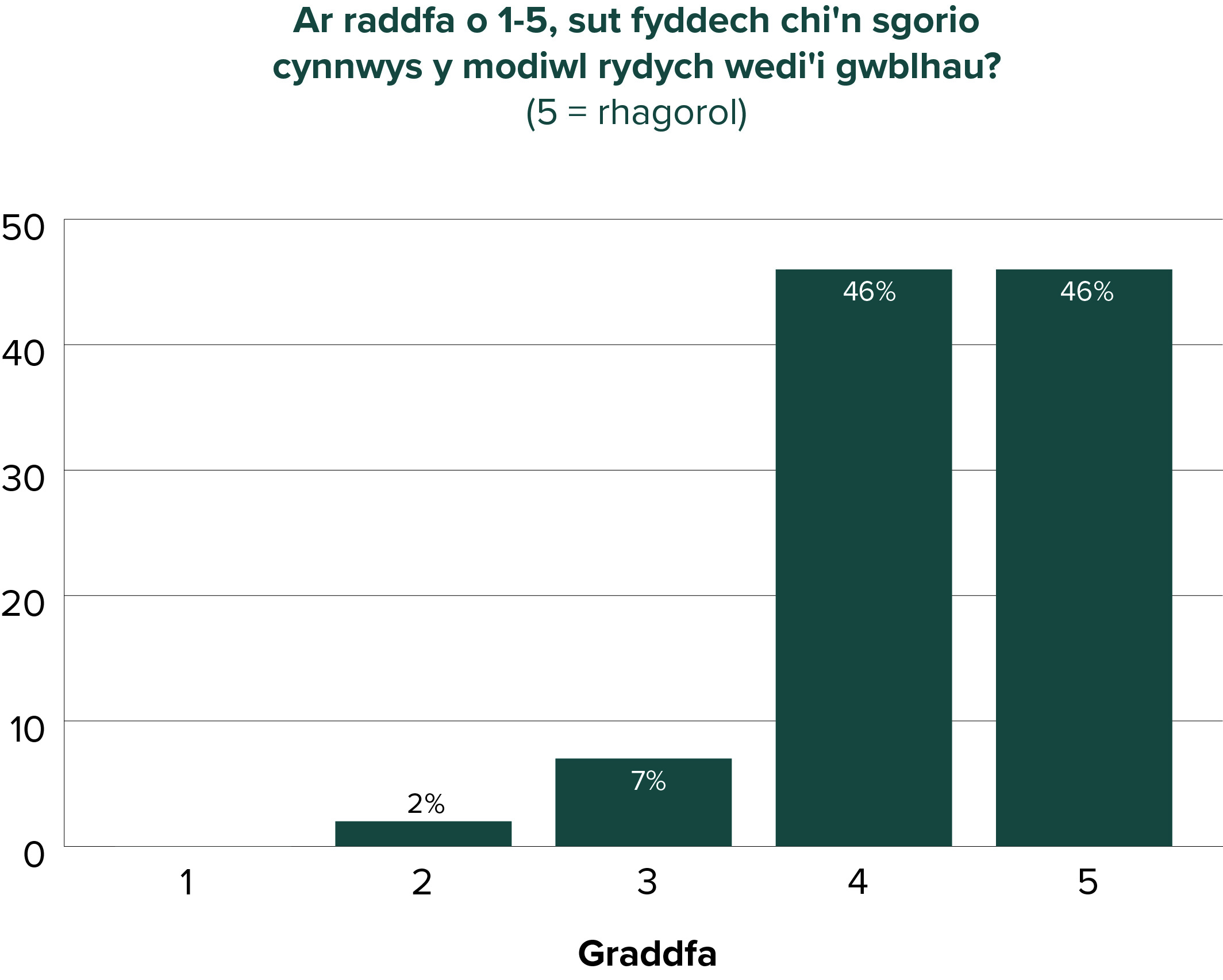 Ym mis Hydref 2024, roedd 147 o bobl wedi cofrestru ar y cwrs ac roedd 70 wedi’i gwblhau.