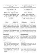 Gorchymyn cefnffordd yr A5 (pont Menai, Ynys Môn a Gwynedd) (gwahardd cerbydau mawr dros dro) 2026: Gorchymyn , math o ffeil: PDF, maint ffeil: 159 KB