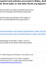 Gosod wyneb newydd ar ffyrdd, llenwi tyllau ac atal tyllau ffyrdd: Ebrill 2025 i Chwefror 2026 , Saesneg yn unig, math o ffeil: ODS, maint ffeil: 10 KB