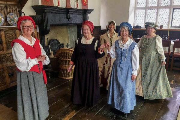 Yn ystod y 18 mis diwethaf, mae'r gwirfoddolwyr wedi dechrau mynd â'u pafanau a’u gafotau o gyfnod Harri VIII allan i'r gymuned, gan ymweld ag ysgolion a grwpiau lleol i berfformio ac i rannu eu gwybodaeth am Blas Mawr a'i dreftadaeth.