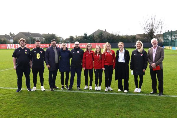 Ymwelodd y Gweinidog Chwaraeon, Jack Sargeant, â'r lleoliad ddydd Mercher a chyfarfod â staff hyfforddi, gan gynnwys rheolwr tîm cenedlaethol Cymru, Rhian Wilkinson, yn ogystal â chwaraewyr ifanc.