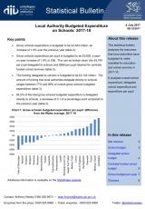 Gwariant a gyllidebwyd gan awdurdodau lleol ar gyfer ysgolion, Ebrill 2017 i Mawrth 2018 , Saesneg yn unig, math o ffeil: PDF, maint ffeil: 365 KB