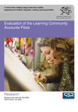 Gwerthusiad o'r cynlluniau peilot cyfrifon cymunedau sy'n dysgu , Saesneg yn unig, math o ffeil: PDF, maint ffeil: 392 KB