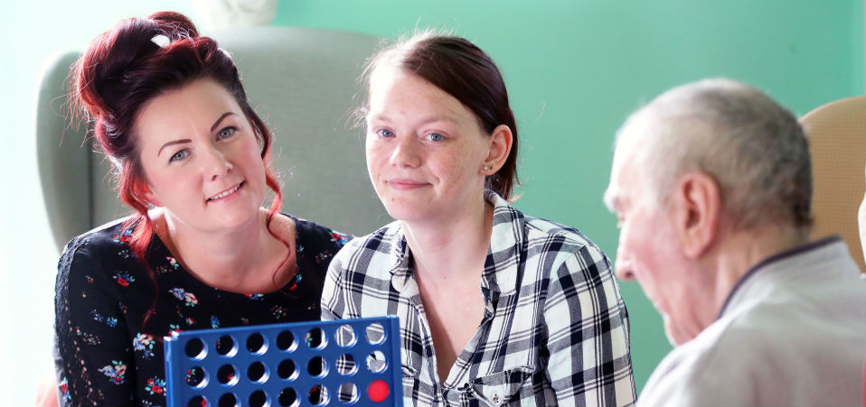 Cafodd Kirsty help y darparwr hyfforddiant PeoplePlus trwy raglen Hyfforddeiaeth (Ymgysylltu) ac yna ymlaen i Lefel 1 mewn Iechyd a Gofal Cymdeithasol ac arweiniodd hyn at swydd gyda chartref gofal Fredericks House ym Merthyr Tudful.