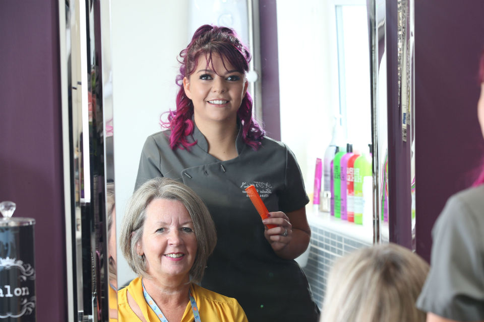 Yn ôl Katie, 23 oed, o Fangor, mae’n llwyddo diolch i’r sgiliau a’r wybodaeth a gafodd trwy wneud prentisiaethau mewn Trin Gwallt a Gwaith Barbwr trwy Busnes@LlandrilloMenai. Mae’n gobeithio gwneud Prentisiaeth Uwch (Lefel 4) mewn Trin Gwallt yn awr.