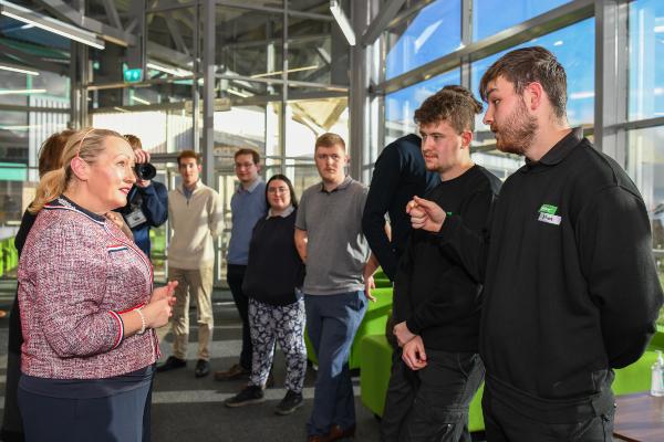 Wrth siarad yn ystod ymweliad â NIDEC Drives, dywedodd Ysgrifennydd y Cabinet dros yr Economi, Ynni a Chynllunio, Rebecca Evans: