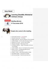 Minutes from the Learning Disability Ministerial Advisory Group meeting held on 4 December 2018.