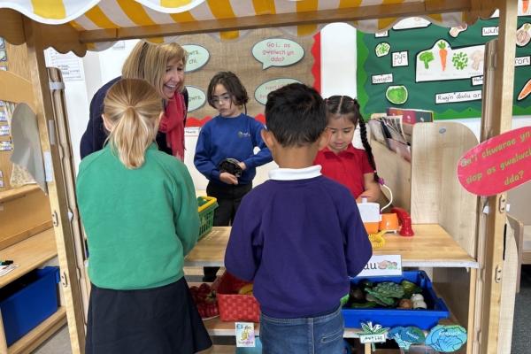 Ymwelodd Ysgrifennydd y Cabinet ag Ysgol Gynradd Groes Wen yn ddiweddar, lle cyfarfu â Guadalupe, merch 5 oed. Symudodd ei theulu o Colombia yn ystod tymor yr haf ac mae hi wedi mynychu'r Uned Trochi Iaith ers dechrau mis Medi. Mae hi'n setlo'n dda ac yn mwynhau ymarfer siarad Cymraeg yn yr ardal chwarae rôl.