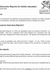 Mesurau canlyniadau dysgwyr ar gyfer addysg bellach a dysgu oedolion yn y gymuned, Awst 2015 i Gorffennaf 2016 , Saesneg yn unig, math o ffeil: PDF, maint ffeil: 716 KB