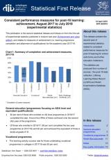 Mesurau perfformiad cyson ar gyfer dysgu ôl-16: cyflawniad a gwerth ychwanegol, Awst 2017 i Gorffennaf 2018 (ystadegau arbrofol) , Saesneg yn unig, math o ffeil: PDF, maint ffeil: 1 MB