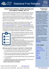 Oedolion sy'n derbyn gofal a chymorth, Ebrill 2017 i Mawrth 2018 (ystadegau arbrofol) , Saesneg yn unig, math o ffeil: PDF, maint ffeil: 589 KB