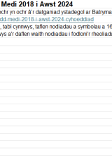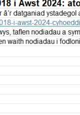 Os oes angen fersiwn fwy hygyrch o’r ddogfen hon arnoch, e-bostiwch digidol@llyw.cymru. Dywedwch wrthym pa fformat sydd ei angen. Os ydych yn defnyddio technoleg gynorthwyol, nodwch fanylion.