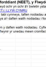 Pobl ifanc heb fod mewn addysg, cyflogaeth neu hyfforddiant (NEET): Ebrill 2023 i Fawrth 2024 , math o ffeil: ODS, maint ffeil: 21 KB