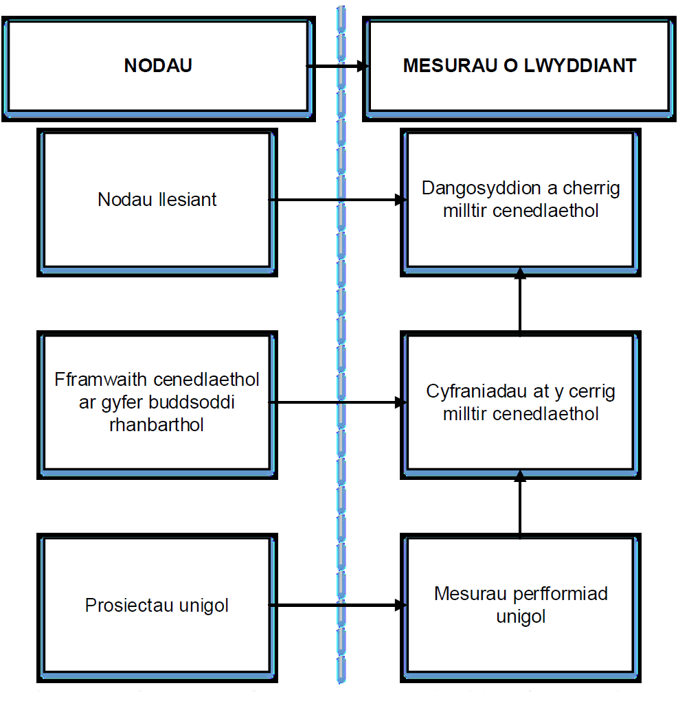 Dangosyddion cenedlaethol arfaethedig y byddwn yn gosod y cerrig milltir cenedlaethol yn eu herbyn1234567