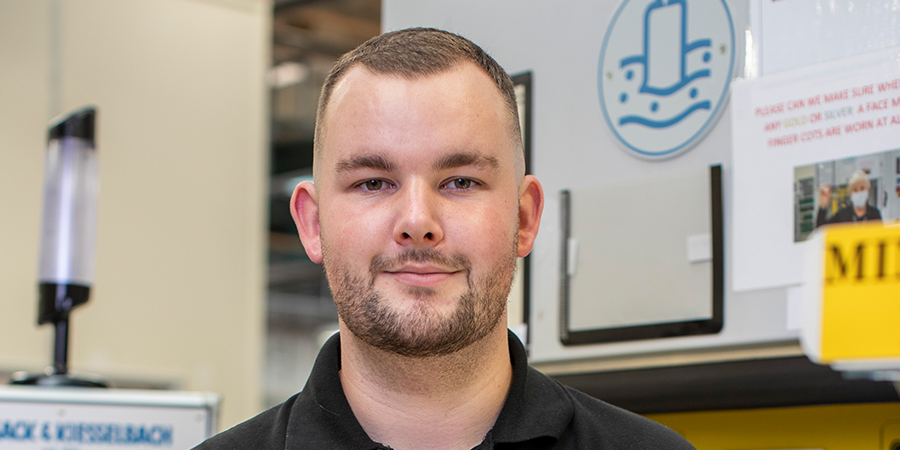 Gŵr ifanc 21 mlwydd oed yn cael cyfle euraid gyda phrentisiaeth yn y Bathdy Brenhinol.