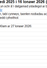 Os oes angen fersiwn fwy hygyrch o’r ddogfen hon arnoch, e-bostiwch digidol@llyw.cymru. Dywedwch wrthym pa fformat sydd ei angen. Os ydych yn defnyddio technoleg gynorthwyol, nodwch fanylion.