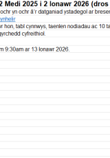 Os oes angen fersiwn fwy hygyrch o’r ddogfen hon arnoch, e-bostiwch digidol@llyw.cymru. Dywedwch wrthym pa fformat sydd ei angen. Os ydych yn defnyddio technoleg gynorthwyol, nodwch fanylion.