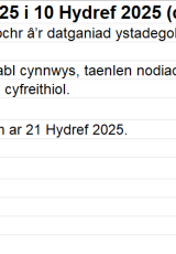 Os oes angen fersiwn fwy hygyrch o’r ddogfen hon arnoch, e-bostiwch digidol@llyw.cymru. Dywedwch wrthym pa fformat sydd ei angen. Os ydych yn defnyddio technoleg gynorthwyol, nodwch fanylion.