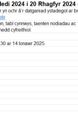 Os oes angen fersiwn fwy hygyrch o’r ddogfen hon arnoch, e-bostiwch digidol@llyw.cymru. Dywedwch wrthym pa fformat sydd ei angen. Os ydych yn defnyddio technoleg gynorthwyol, nodwch fanylion.