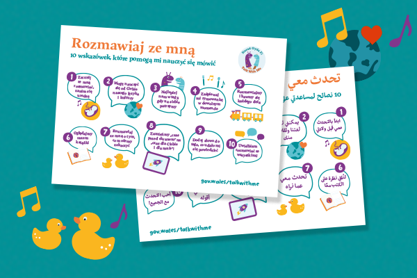 Rydym ni wedi casglu amrywiaeth o offer, awgrymiadau a chyngor at ei gilydd i helpu rhieni i ddeall pwysigrwydd eu rhan nhw o ran cael eu plant i siarad. Byddem ni wrth ein boddau pe byddet ti’n rhannu'r offer hyn â'r teuluoedd rwyt ti’n gweithio gyda nhw.