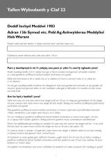 Mae’r taflenni hyn yn rhoi esboniad i’r claf am ei gyfnod yn yr ysbyty, a’i hawliau yn yr amgylchiadau hynny.