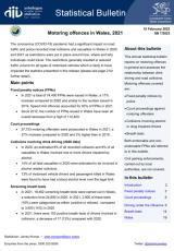 - Yn 2021, cynhaliwyd 18,462 o brofion anadl yng Nghymru, sy’n ostyngiad o 24,800 yn 2020. Yn 2021, roedd 2,900 o’r profion hyn (16%) naill ai’n bositif, neu wedi cael eu gwrthod, o'i gymharu â 3,600 (14%) yn 2020.