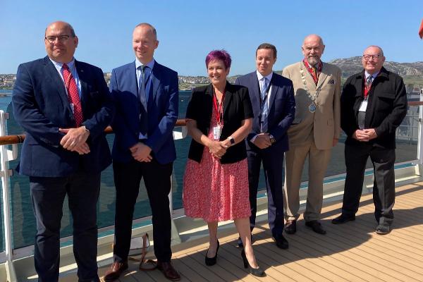 Mae’n hyfryd cael croesawu teithwyr, capten a chriw MS Queen Victoria yn swyddogol i Gymru.