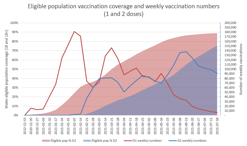Figure 2. Vaccination population coverage in Wales (1 and 2 doses)