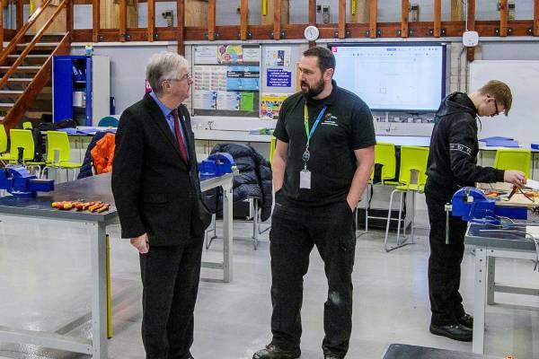 Cafodd y Prif Weinidog, Mark Drakeford, y cyfle i gwrdd â rhai o fecanyddion ceir trydan y dyfodol wrth ymweld â Choleg Cambria yn Wrecsam.