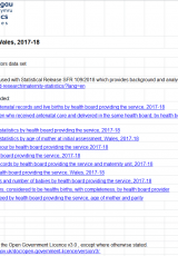 Ystadegau mamolaeth, Ebrill 2017 i Fawrth 2018: tablau , Saesneg yn unig, math o ffeil: ODS, maint ffeil: 194 KB