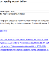 Ystadegau mamolaeth a genedigaethau: adroddiad ansawdd (tablau) , Saesneg yn unig, math o ffeil: ODS, maint ffeil: 94 KB